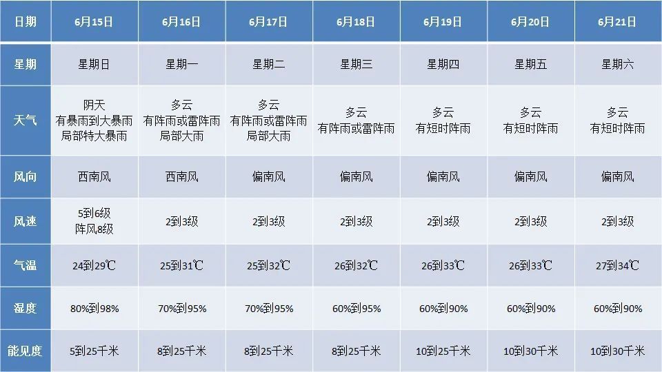 15日夜间-16日,粤北和珠江三角洲市县有大雨到暴雨,局部大暴雨,其余市县多云,有中(雷)雨。