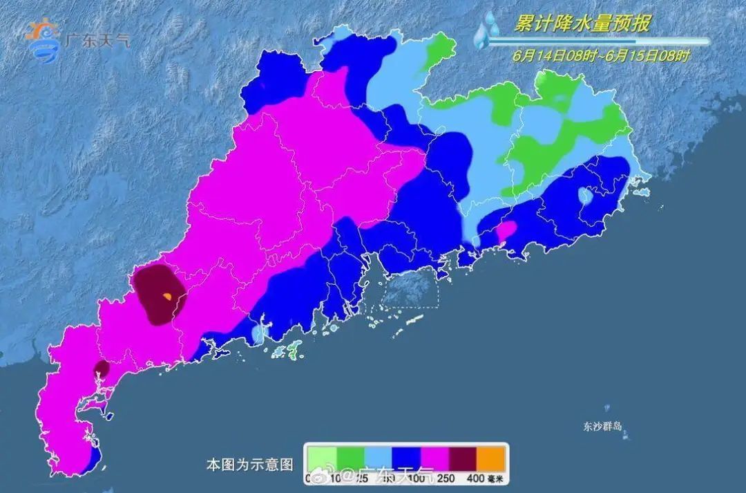 14日夜间-15日白天,粤西、云浮、肇庆、清远、韶关和粤东市县有暴雨到大暴雨,局部特大暴雨,其余市县有大雨到暴雨局部大暴雨。