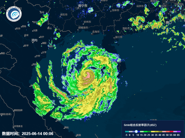 陆上大风预报:14日,湛江、茂名风力7~9级转11~12级阵风13~14级,粤西其余市县和珠江三角洲沿海市县风力6~8级转9~10级阵风11~12级。