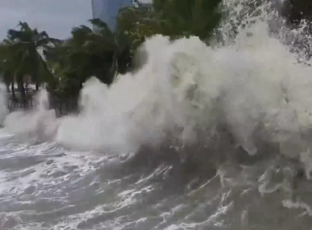 受台风蝴蝶影响,三亚沿海普遍出现8~10级阵风,沿海海浪汹涌,13日下午,三亚湾岸边掀起数米高浪涌